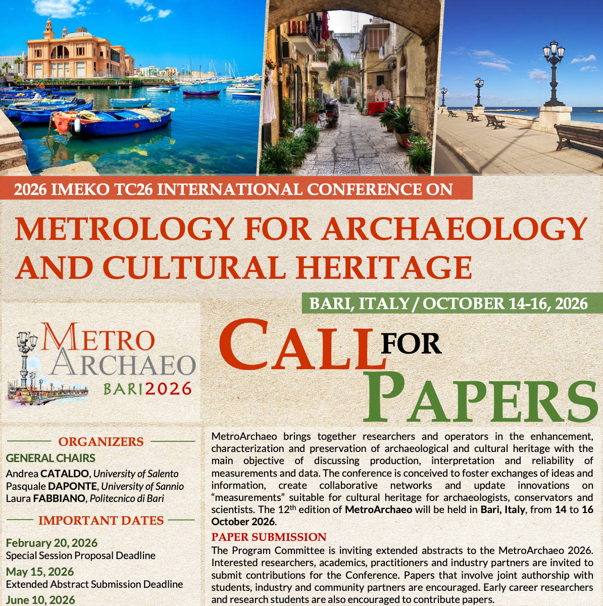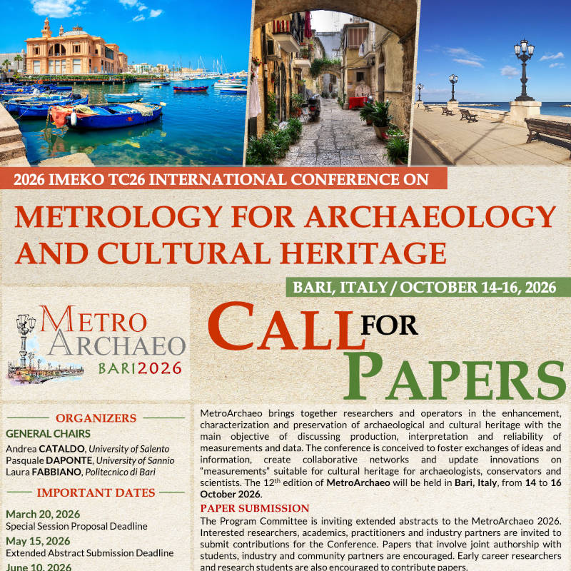 The Program Committee is inviting Extended Abstracts (from 4 to 5 pages) for the IMEKO MetroArchaeo 2026 Conference.