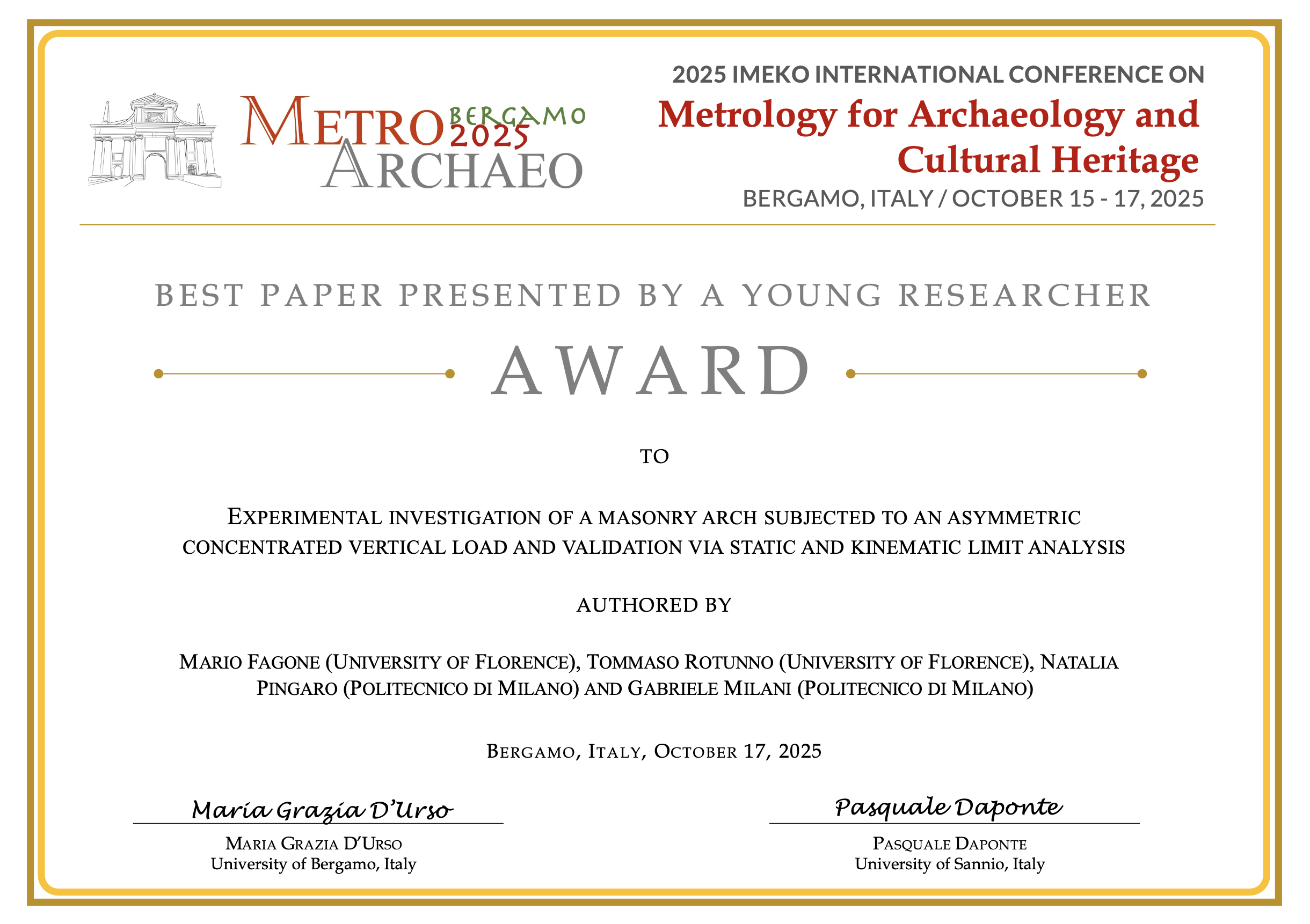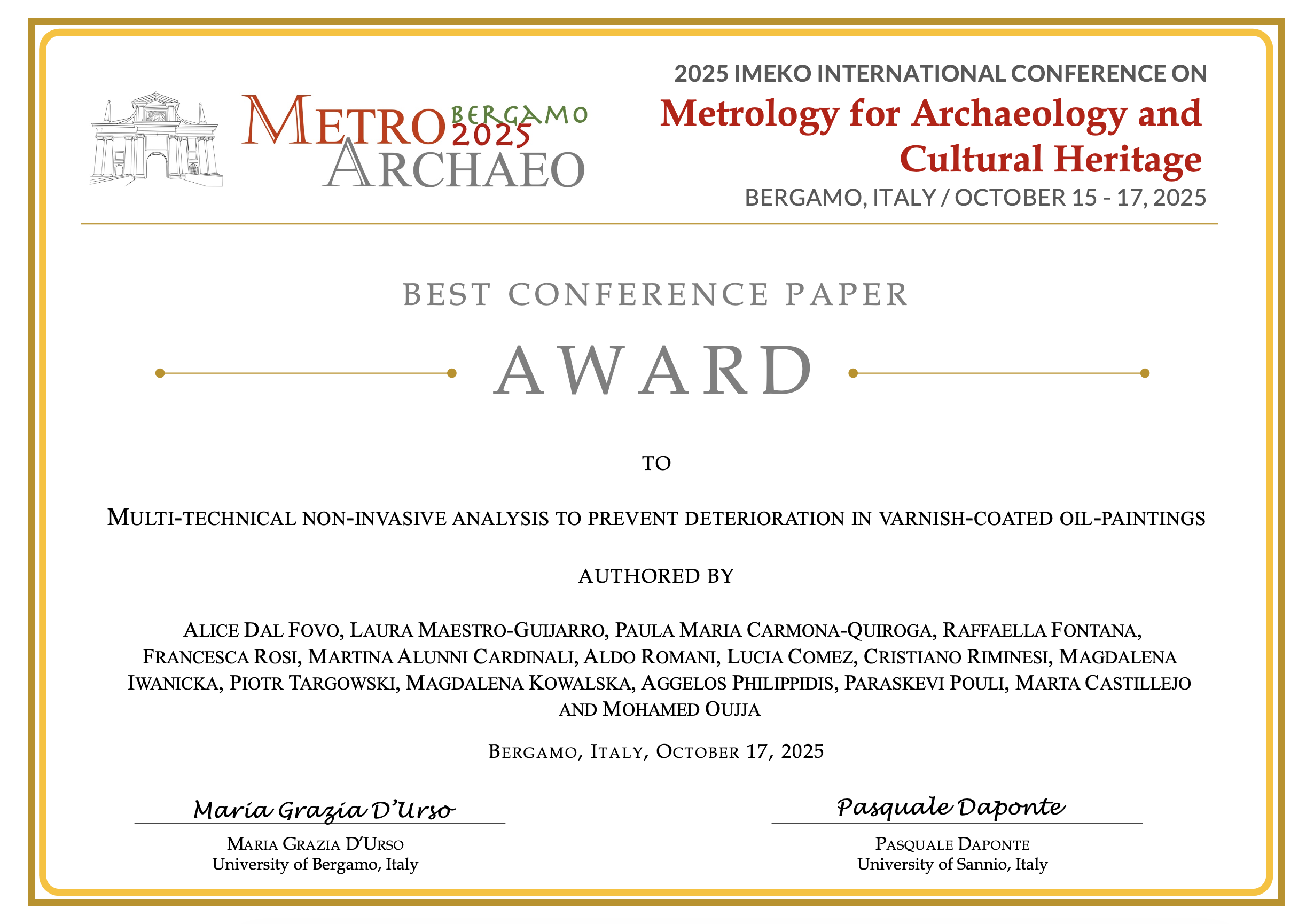 This award recognizes the most outstanding paper presented at IMEKO MetroArchaeo 2025.